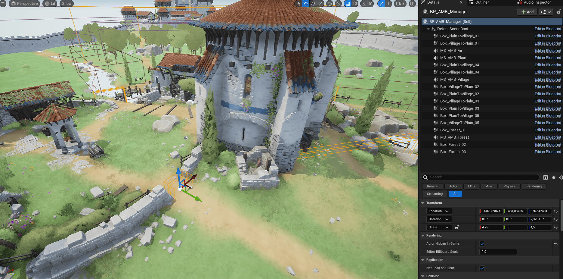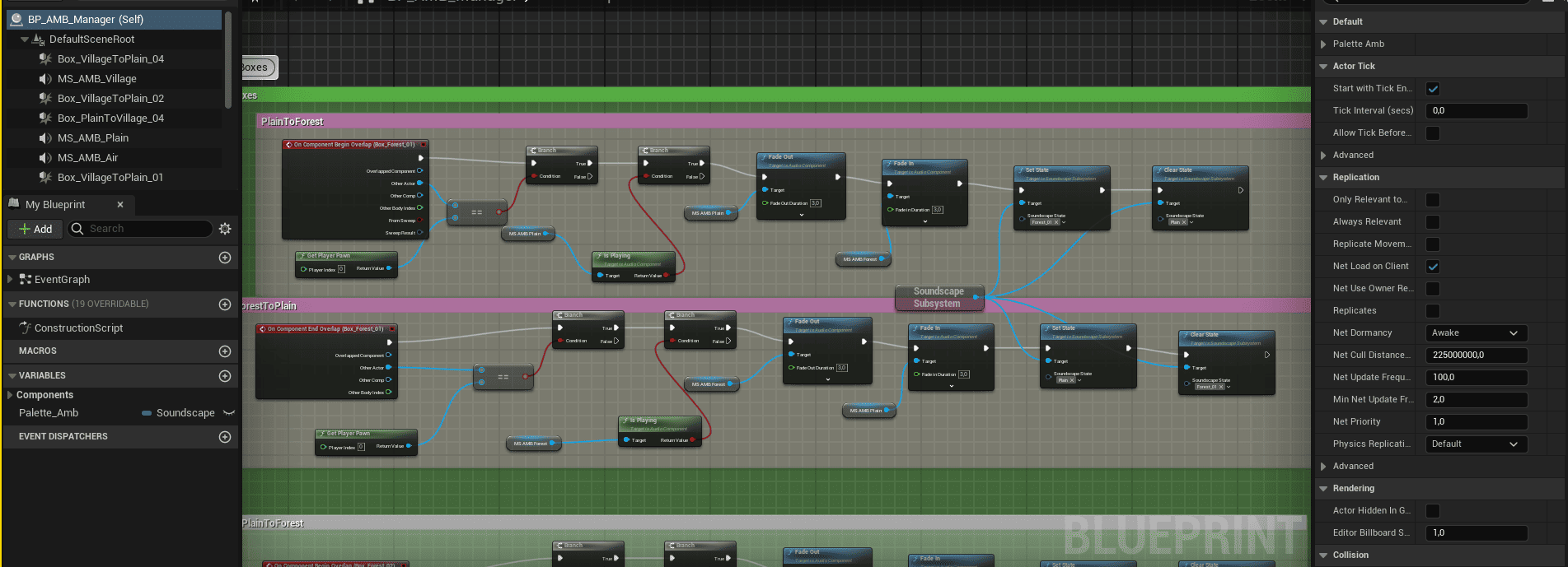 Create blueprint to manage ambiences with the Soundscapes tool.