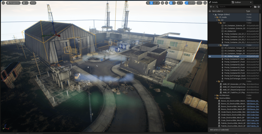 Military HangarSound implementation in Unreal Engine 5 project using Wwise.